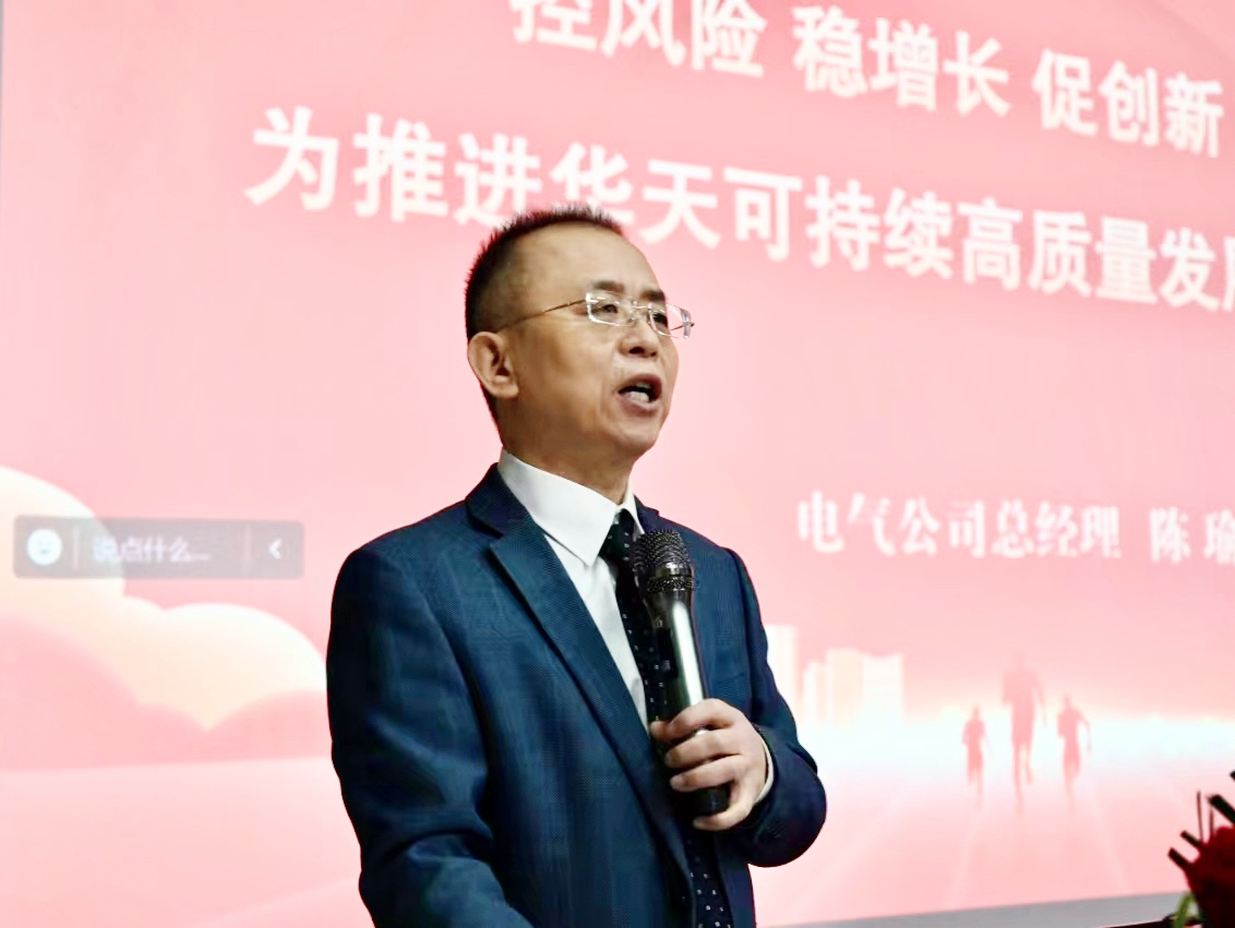 會議首先由華天電氣總經理陳瑜作題為《控風險 穩增長 促創新 拓市場 為推進華天可持續高質量發展而努力奮斗》的工作報告,對公司2023年度工作進行了總結,并對2024年的公司經營目標進行了規劃。